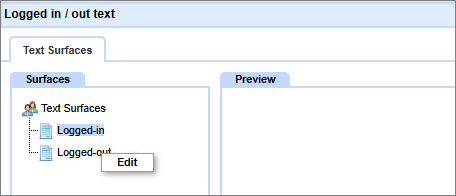 The component provides two text surfaces, one to be displayed when the user is logged out (and so can login), and the other for when the user is logged in (and so can update their details or logout).