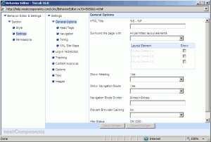 Behavior Editor Settings are also where the site designer enters the Meta-tag and Meta-Keyword information to assist in placement in Internet search engines.