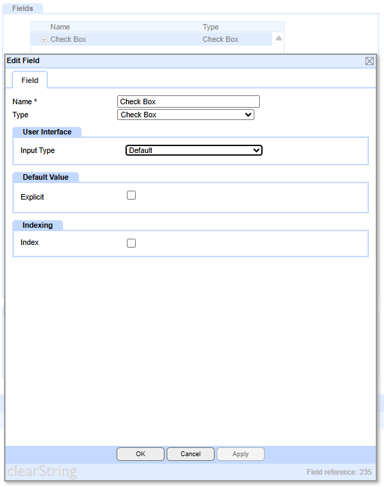 Displays a checkbox at data entry, and stores the true/false value.