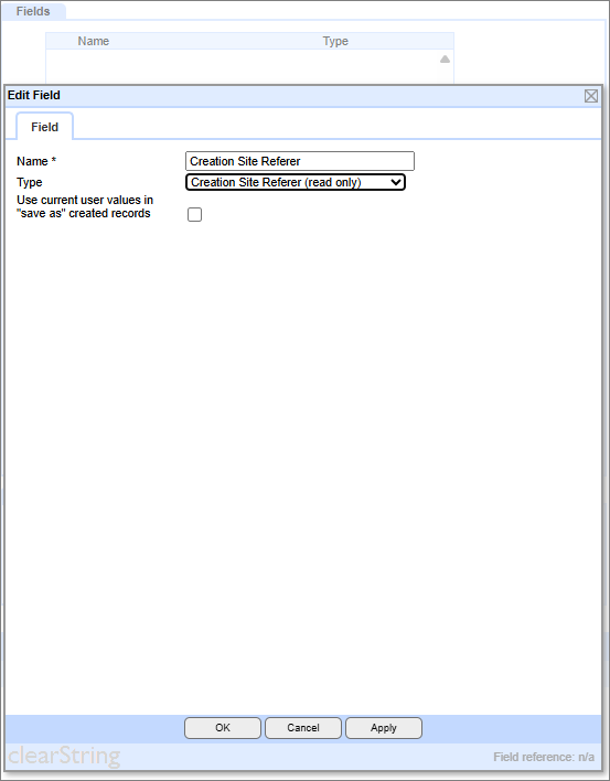 This text datatype contains the referring url first recorded when the user who added the Record first browsed to the site.