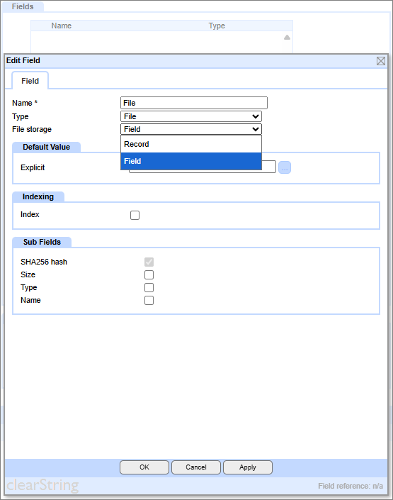 When files are stored at the Field level, they are in a separate folder dedicated to that field in the record. This allows separate fields to have files of the same name without conflict.