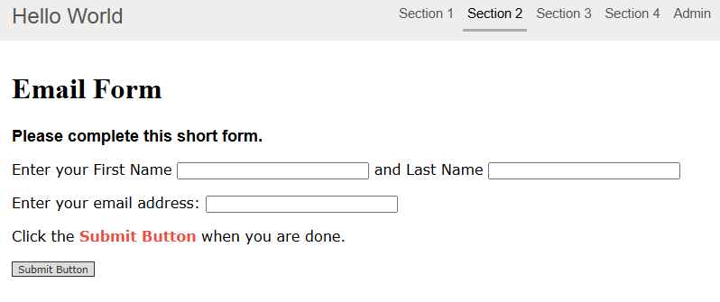 To see the form as a website visitor will see it use a different browser or a Private/Incognito session, otherwise you will need to log-out at the Admin section of the website - and then select the Email Form. Your form should look similar to this:
