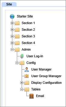 Using the techniques outlined earlier, add a Page to the Config and name it Tables, then add the table to your Starter Site in the position shown below, and rename it to Email.