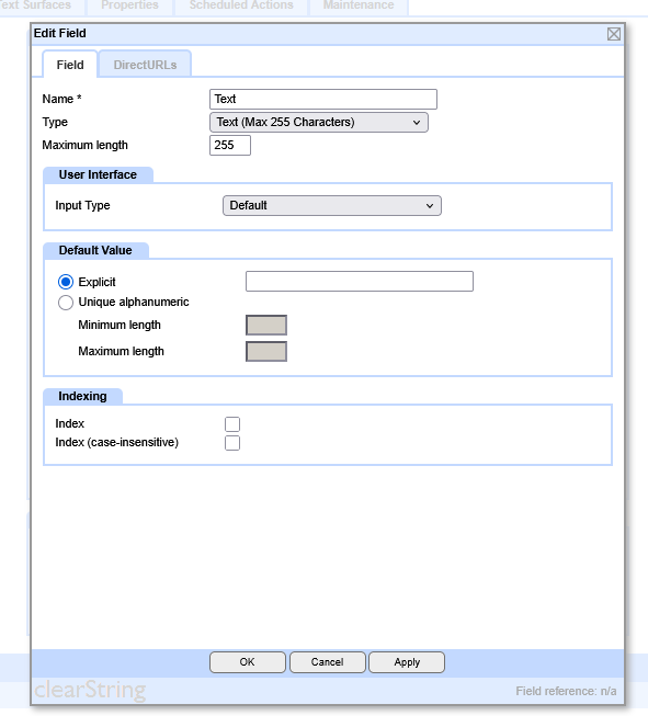 Select [Create], then at the 'Field-tab' add the following Fields, one at a time as explained below.